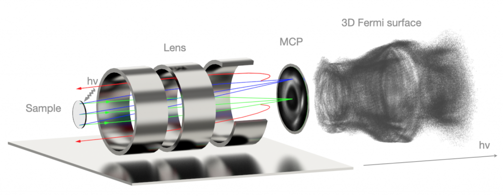 The very first 3D-Fermi surface map is obtained using FeSuMa experimentally ! The dataset consists of 100 conventional Fermi surface maps using 100 different excitation photon energies (14 – 32 eV) and is collected within only 100 minutes.